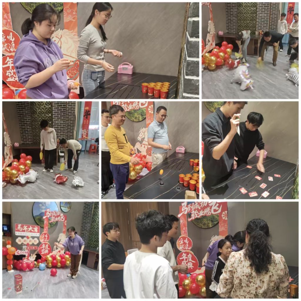 精彩纷呈,高潮迭起。席间穿插“一投即中”“策马奔腾”“乒博未来”“妙语连珠”“小手抓福”等互动游戏,在愉快氛围中增进情谊,欢声笑语此起彼伏。